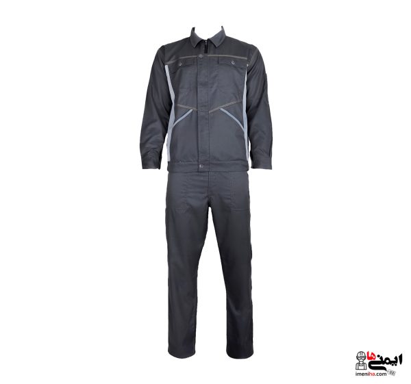 - لباس کار مردانه دارای زیپ سرتاسریست که به وسیله یک کاور محافظ پوشیده شده است. این کاور محافظ توسط سه دکمه پلاستیکی بسته شده که از این طریق زیپ مخفی می شود.